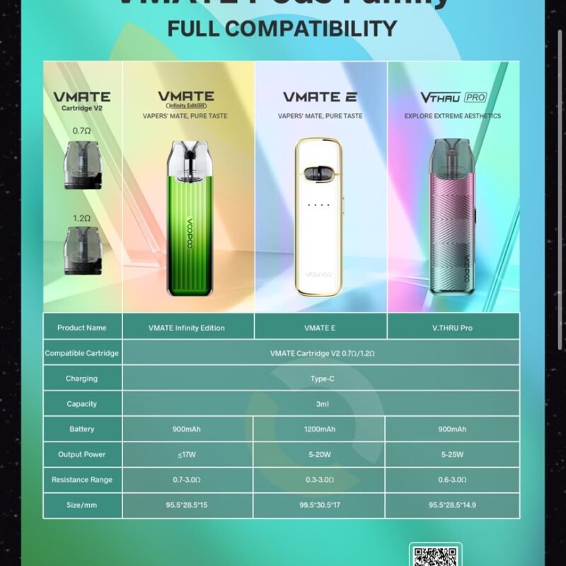 VOOPOO Vmate Pro Kit 是 VOOPOO 推出的一款輕巧高性能電子煙主機,整合 現代簡約外型 與 實用性能,適合日常攜帶與深度體驗。擁有 900mAh 電池、最高 25W 功率,搭配 iCOSM 解碼技術,還原更細膩的風味。