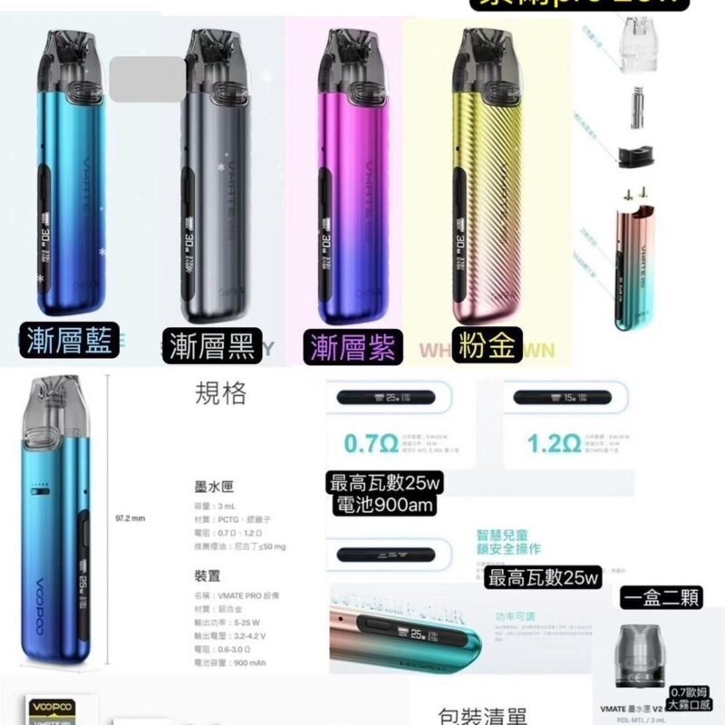 Voopoo Vmate Pro 25W 新版 Power Edition主機VOOPOO Vmate Pro Kit主機Voopoo Vmate Pro 25W索爾主機Voopoo Vmate空彈耗材